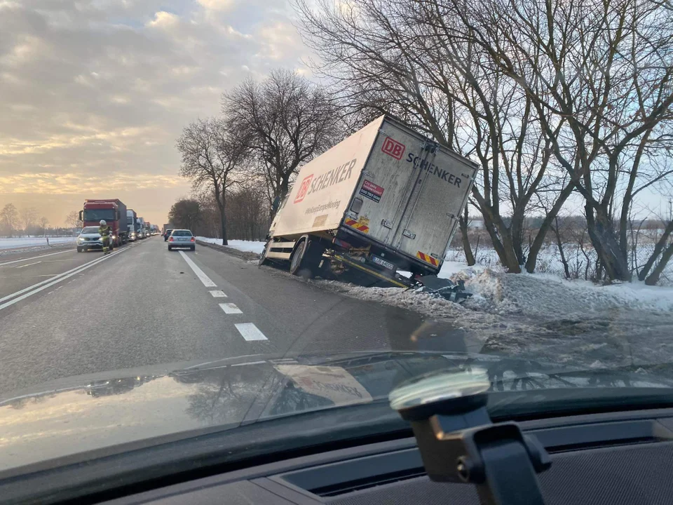 Ciężarówka w rowie na DK2