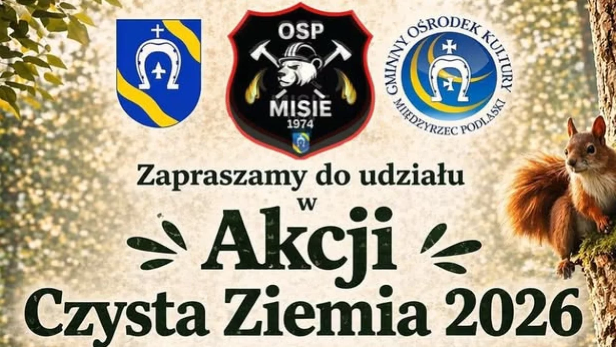 Informacje międzyrzeckieGmina Międzyrzec Podlaski, Ochotnicza Straż Pożarna w Misiach oraz Gminny Ośrodek Kultury łączą siły w trosce o środowisko. Już pod koniec kwietnia mieszkańcy będą mieli okazję wziąć udział w wielkim, wiosennym sprzątaniu w ramach „Akcji Czysta Ziemia 2026”.
