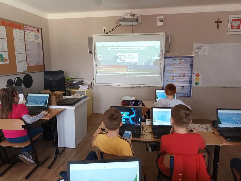 W lutym uczniowie trzeciej klasy uczcili Dzień Bezpiecznego Internetu, podczas którego przyswoili wiedzę na temat korzystania z Internetu w bezpieczny sposób, dbania o swoje wizerunki w sieci oraz przestrzegania zasad dobrego zachowania w Internecie, czyli zasad netykiety. Przy użyciu quizu utrwalili swoją wiedzę na temat tych zagadnień.