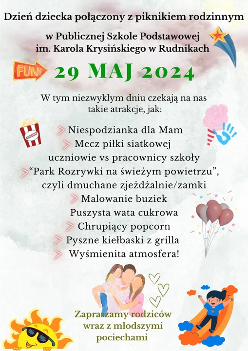 Informacje międzyrzeckiePubliczna Szkoła Podstawowa w Rudnikach już 29 maja zaprasza na piknik rodzinny. W programie możemy znaleźć szereg atrakcji nie tylko dla najmłodszych.