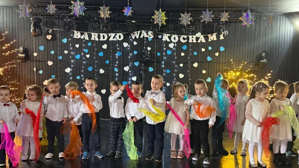 Na scenie zaprezentowały się cztery grupy przedszkolne: Pszczółki, Tygryski, Motylki oraz Wiewiórki. Mali artyści z ogromnym zaangażowaniem śpiewali piosenki, tańczyli, recytowali wiersze, a także zaprosili swoich ukochanych dziadków do wspólnego kolędowania. Każdy występ był nagradzany entuzjastycznymi oklaskami, a duma i wzruszenie wyraźnie malowały się na twarzach zaproszonych seniorów.