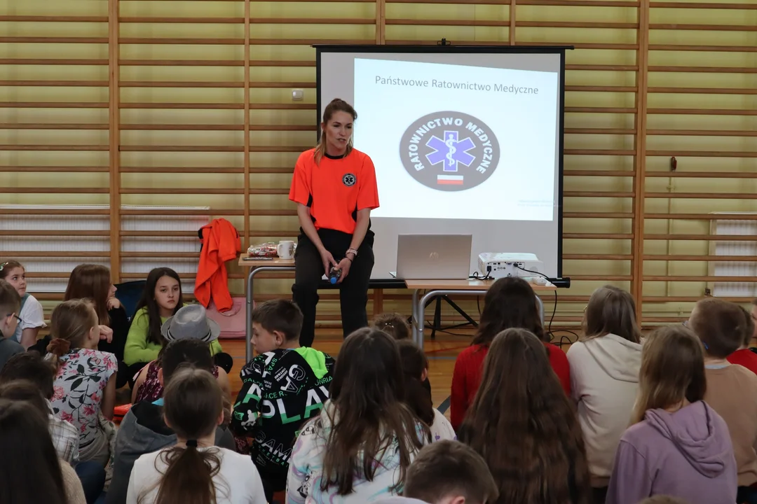 Klasy 4-6 oraz 7-8 pod kierunkiem ratownika medycznego zgłębiały wiedzę na temat udzielania pierwszej pomocy. Po bardzo interesujących zajęciach uczniowie są profesjonalnie przygotowani do niesienia pomocy poszkodowanym.