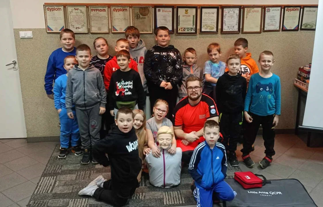 Ostatni dzień pierwszego tygodnia ferii przyniósł cenną lekcję pierwszej pomocy. Ireneusz Siwiak, ratownik medyczny, przybliżył dzieciom zasady udzielania pomocy przedmedycznej i obsługi defibrylatora AED. Uczestnicy nauczyli się, jak reagować w sytuacjach zagrożenia życia. Po zajęciach edukacyjnych na wszystkich czekał smaczny poczęstunek – grzanki z dżemem i tosty w jajku.
