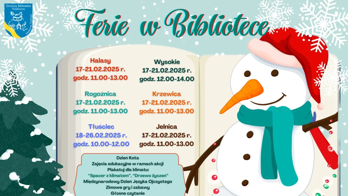 Ferie w bibliotece to okazja do ciekawego spędzenia czasu w zimowe dni. Organizatorzy zapraszają wszystkich chętnych do udziału w zajęciach.