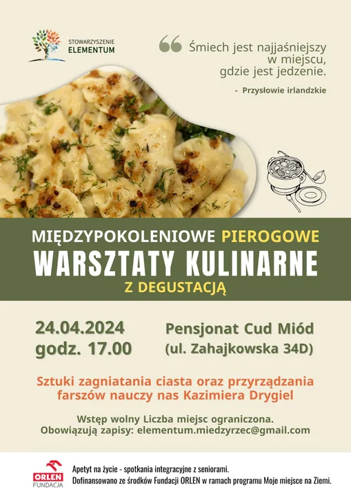 Wiek nie ma znaczenia - warsztaty są międzypokoleniowe. Organizatorzy wydarzenia czekają na amatorów, ale też wyćwiczonych w pierogowej sztuce. Zapisy na: elementum.miedzyrzec@gmail.com