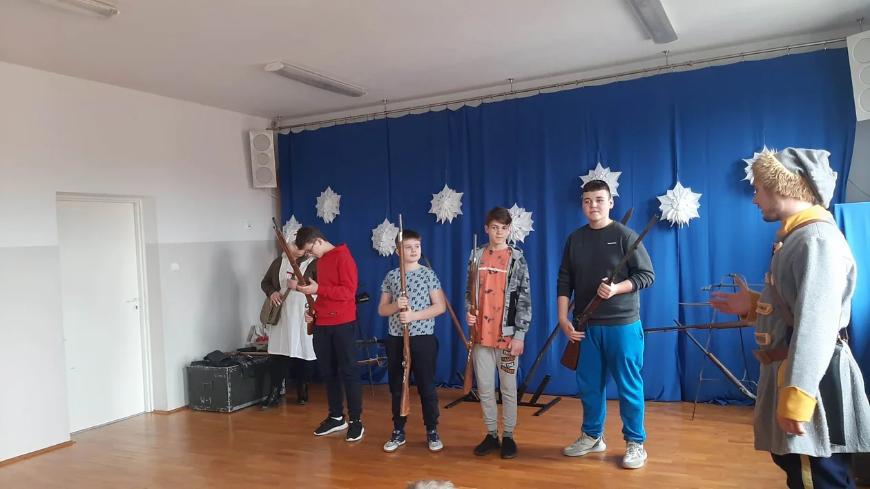 Spotkanie było okazją do żywej lekcji historii. Uczniowie mogli zobaczyć stroje z okresu zrywu, a także broń, jaką posługiwali się powstańcy. Była to także okazja do posłuchania o zwyczajach i rysie historycznym tamtego okresu. Zwłaszcza chłopcy byli zaciekawieni bronią, jaką przywieźli ze sobą rekonstruktorzy. Nic dziwnego, w końcu w drelowskiej placówce z powodzeniem funkcjonuje strzelnica.