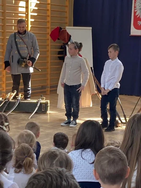Tematem występu była opowieść o tym, jak przodkowie walczyli o wolność, honor i ojczyznę. W programie przedstawiono wesołą lekcję historii, upamiętniającą dążenia niepodległościowe Polaków. Pokazano stroje z tamtejszej epoki, a także omówiono powstania narodowe - kościuszkowskie, okres Księstwa Warszawskiego, listopadowe i styczniowe. Uczniowie mieli okazję uczestniczyć w pokazie, a także mogli wykazać się swoją wiedzą na temat historii.