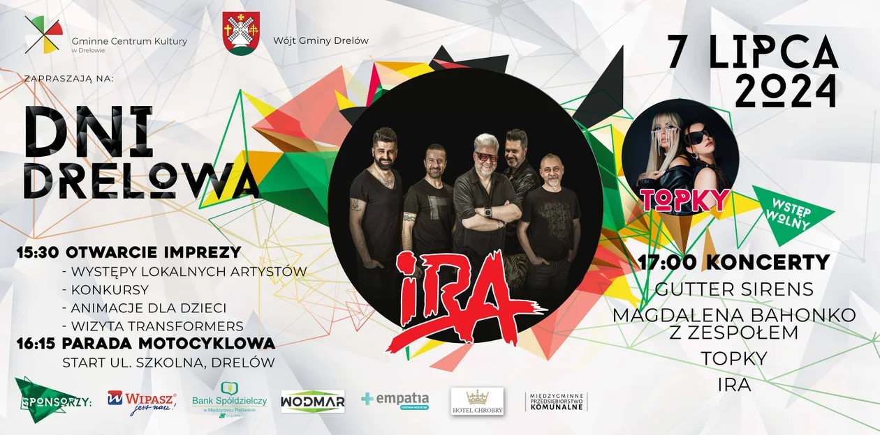 Informacje międzyrzeckieJuż w najbliższą niedzielę startują Dni Drelowa. Na scenie wystąpi m.in. zespół Topky. Zaraz po nim na scenie pojawią się legendy polskiej muzyki - formacja IRA.