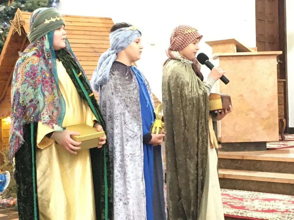 W jasełkach wzięli udział uczniowie klas 4-6 oraz dwie dziewczynki z klasy pierwszej. Przedstawienie rozpoczęli najmłodsi członkowie szkolnej społeczności - przedszkolaki z grupy 3-4 latków, które tańcem i piosenką powitały małego Jezusa. Poszczególne sceny przeplatane były subtelną kolędą i tańcami.