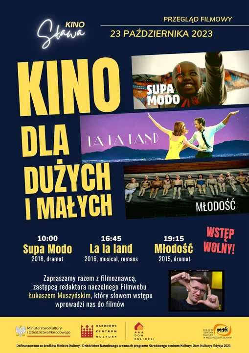 Informacje międzyrzeckie23 października w Kinie Sława odbędzie się pierwszy przegląd filmów pn. "Kino dla dużych i małych". Repertuar filmowy na ten dzień zaproponował Łukasz Muszyński - zastępca redaktora naczelnego portalu Filmweb. Każdy seans będzie opatrzony jego komentarzem. Tego dnia wstęp na wszystkie projekcje jest wolny.