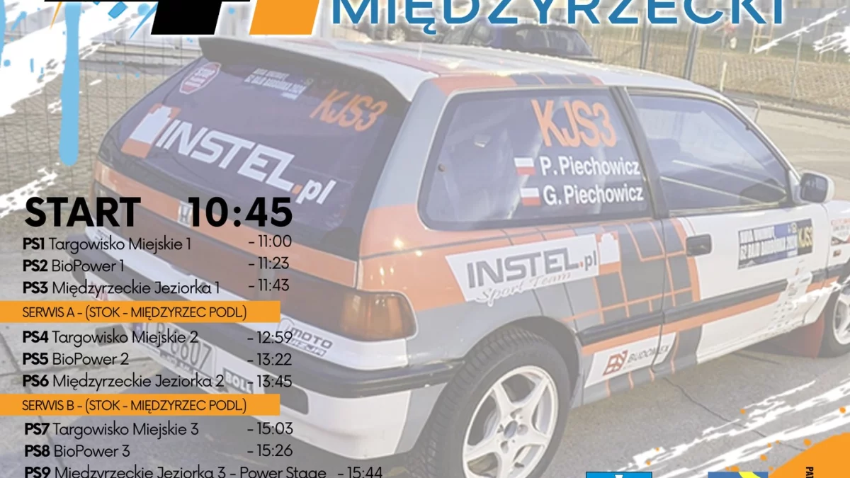 Czwarty Rajd Międzyrzecki rozpocznie się 11 maja o godzinie 10.45. Organizatorami są Automobilklub Bialskopodlaski oraz Polski Związek Motorowy. Zapisy na stronie www.wyniki.online. Szczegóły dotyczące wydarzenia dostępne na plakacie.