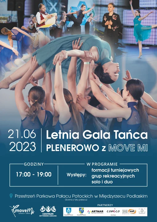 Informacje międzyrzeckieJuż dziś o godzinie 17:00 odbędzie się Letnia Gala Tańca - Plenerowo z MOVE MI. Tancerze z międzyrzeckiej szkoły tańca zaprezentują się w parku Potockich, gdzie zaprezentują dwugodzinny spektakl taneczny. Nie może Was tam zabraknąć!