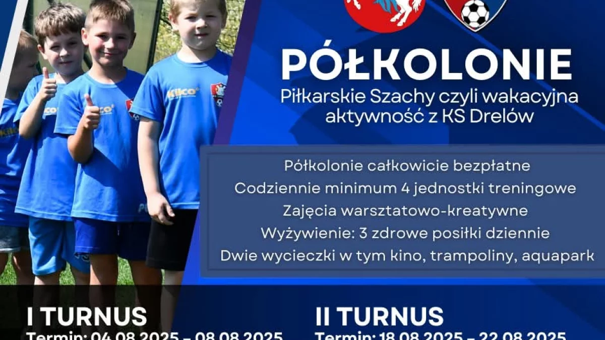 Dzieci mogą liczyć na codzienne treningi piłkarskie i gry zespołowe prowadzone przez licencjonowanych trenerów, a także ciekawe zajęcia kreatywne w razie niepogody – od puszczania latawców po szachy i łamigłówki. Każdy uczestnik otrzyma też pełen zestaw sportowy: koszulkę, spodenki i worek treningowy. W programie przewidziano również dwie atrakcyjne wycieczki – do kina w Białej Podlaskiej oraz do Parku Trampolin i Aquaparku w Siedlcach.