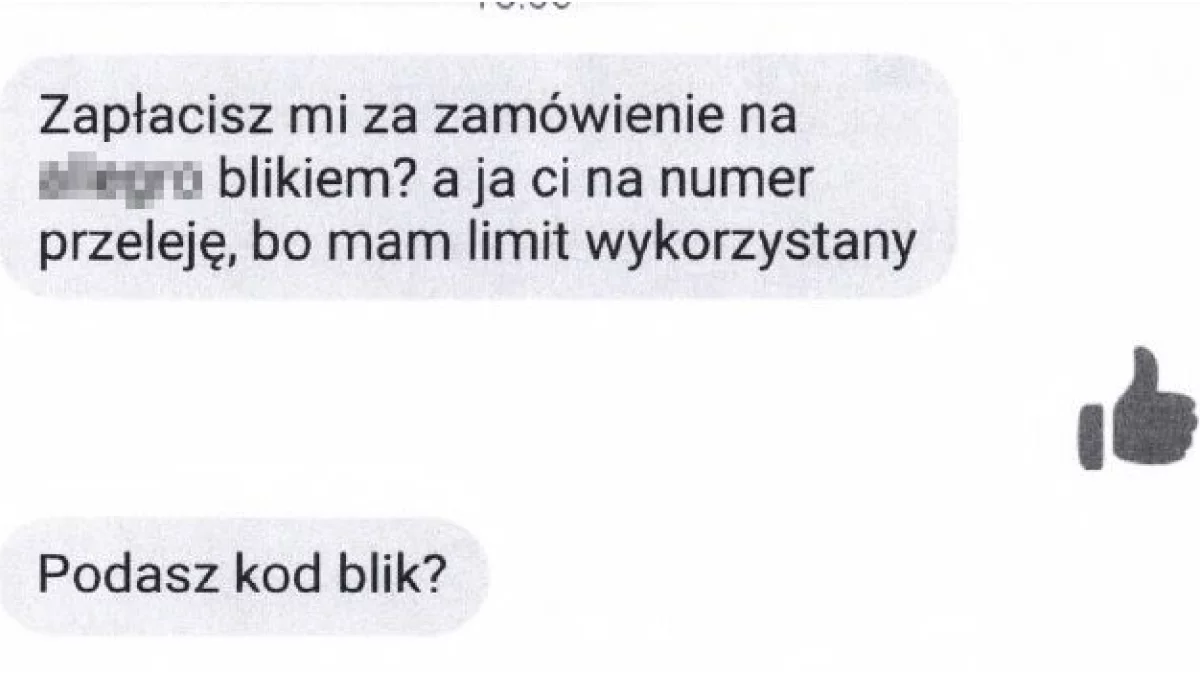- Z relacji 60-latka wynikało, że za pomocą komunikatora internetowego otrzymał wiadomość. Był przekonany, że jest to informacja przesłana przez jego córkę, z prośbą o opłacenie przesyłki na portalu ogłoszeniowym. Mężczyzna nie zdziwił się otrzymaną korespondencją, gdyż w przeszłości wielokrotnie opłacał jej przesyłki. W trakcie trwającej rozmowy wygenerował kody, które pozwoliły oszustom na wypłatę 3 tys. zł. - opisuje nadkomisarz Barbara Salczyńska-Pyrchla z KMP w Białej Podlaskej.