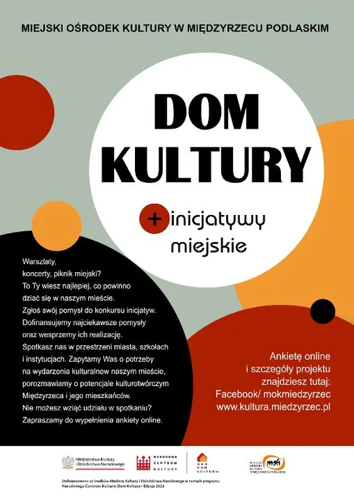 - Przeprowadzenia ankiet i diagnozy potencjału kulturowego mieszkańców Międzyrzeca Podlaskiego i Miejskiego Ośrodka Kultury.