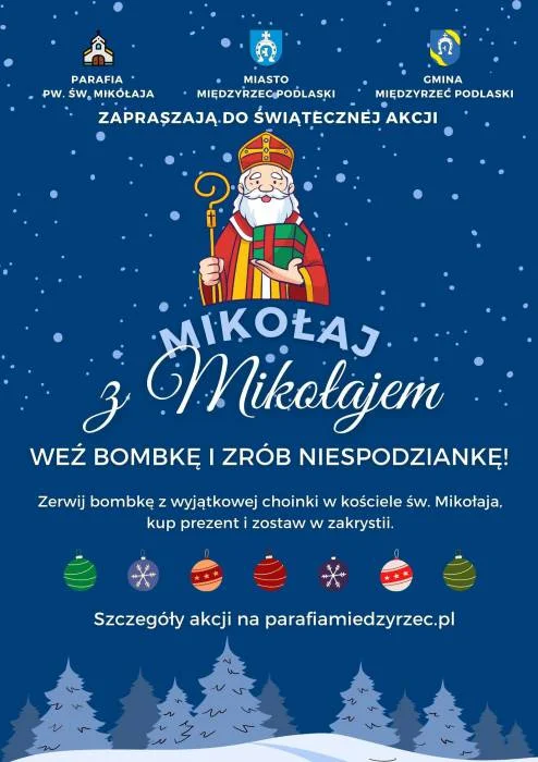 Do 2016 roku, w parafii Św. Mikołaja, prowadzona była akcja świątecznej pomocy dzieciom. Wydarzenie polegało na tym, że chcący udzielić pomocy zrywali bombki umieszczone na choinkach przy ołtarzu i przygotowywali podarunki dla zgłoszonych dzieci. W tym roku nowy proboszcz tej parafii, chce wrócić do akcji, która odbiła się swego czasu szerokim echem w Międzyrzecu Podlaskim. Ksiądz Dariusz Parafiniuk nadał temu wydarzeniu nazwę, którą od tego roku będzie "Mikołaj z Mikołajem". Do współpracy został zaproszony również Wójt Gminy Międzyrzec Podlaski - Krzysztof Adamowicz oraz Burmistrz Międzyrzeca - Zbigniew Kot.