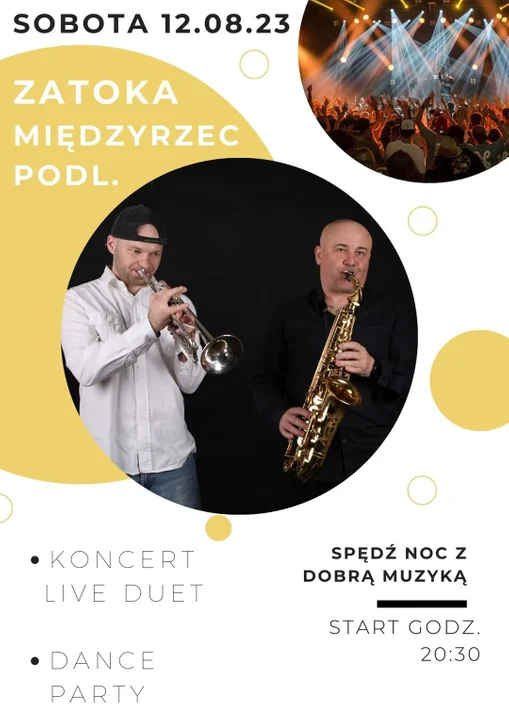 Informacje międzyrzeckieJuż dziś w międzyrzeckiej Zatoce kolejna okazja do dobrego spędzenia czasu na początek długiego weekendu. O 20:30 zagra tam dobrze znany Live Duet, a po ich koncercie planowane jest dance party pod chmurką. Nie może Cię tam zabraknąć!