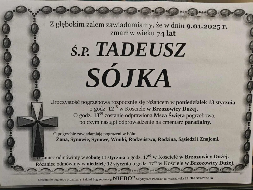 Zapraszamy do obejrzenia galerii zdjęć, które otrzymaliśmy dzięki uprzejmości profilu na Facebook'u - Nekrologi, Kondolencje, Pożegnania - Międzyrzec Podlaski i Okolice. Publikujemy je, by wspólnie uczcić pamięć zmarłych i umożliwić mieszkańcom wyrażenie kondolencji oraz refleksji.