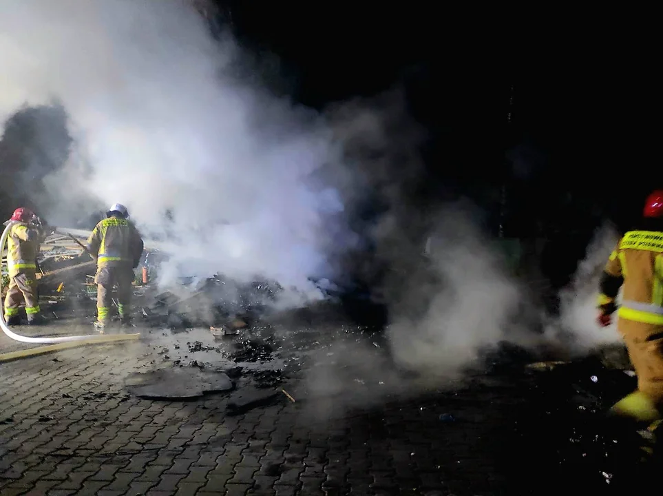 Po przybyciu na miejsce okazało się, że paliła się sterta płyt wiórowych składowanych na posesji. Przyczyną zdarzenia było prawdopodobnie nieostrożne obchodzenie się z ogniem.