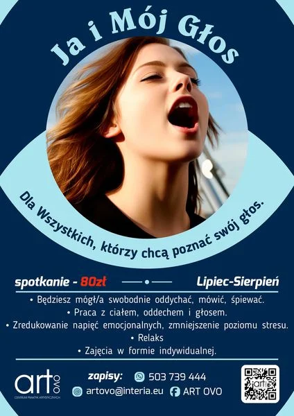 Informacje międzyrzeckieART OVO zaprasza na kolejne zajęcia. Tym razem będzie to wydarzenie dotyczące głosu. Więcej informacji dostępnych na plakacie.