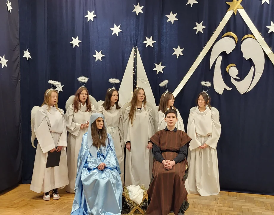 Tegoroczne jasełka zostały przygotowane przez uczniów szóstej, siódmej i ósmej klasy pod opieką Beaty Ziarek. Dekoracje przygotowała natomiast Renata Kurenda. Scenariusz jasełek zawierał najważniejsze wydarzenia towarzyszące narodzinom Jezusa. Uczniowie wcielili się w rolę Józefa i Maryi oraz pastuszków. Po występie głos zabrała dyrektor szkoły, która złożyła wszystkim świąteczne i noworoczne życzenia. Następnie wychowawcy klas spotkali się ze swoimi wychowankami na wigiliach klasowych.