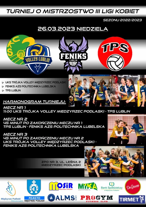Informacje międzyrzeckieSiatkarki UKS Trójka Volley Międzyrzec Podlaski nareszcie u siebie! Już w najbliższą niedzielę rozegrają finałowy turniej o mistrzostwo III ligi kobiet. Start o godzinie 11:00. Trójka w pierwszym meczu zmierzy się z TPS Lublin.