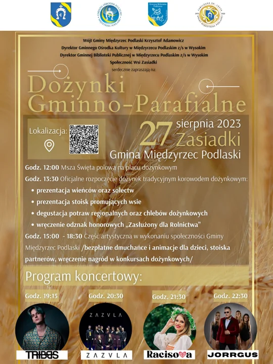 13:30 część oficjalna rozpoczynająca się tradycyjnym korowodem dożynkowym