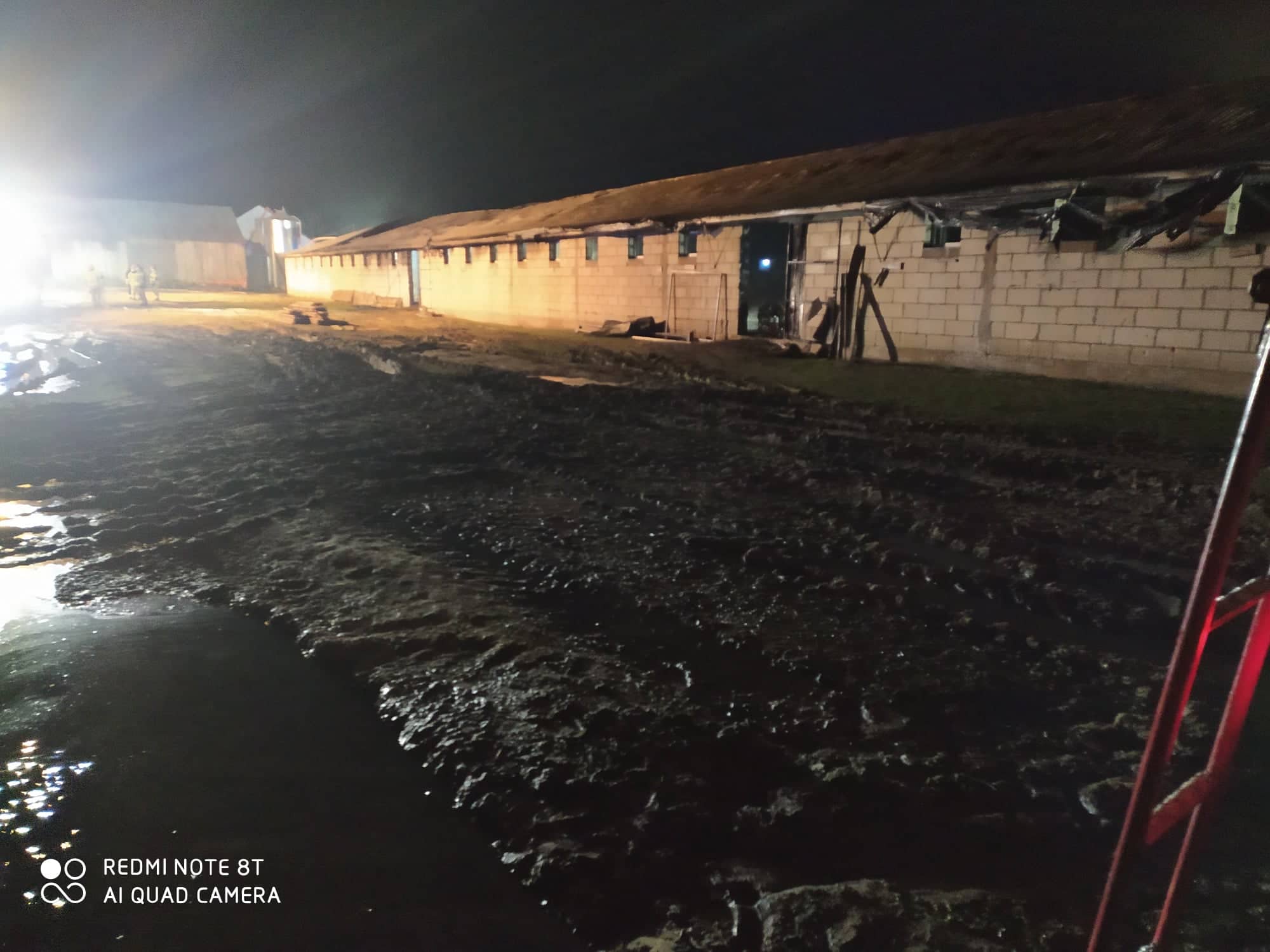 Budynek był inwentarski, murowany. Wewnątrz znajdowało się około osiemnaście tysięcy dwudniowych perliczek. Niestety wszystkie zwierzęta spaliły się żywcem.