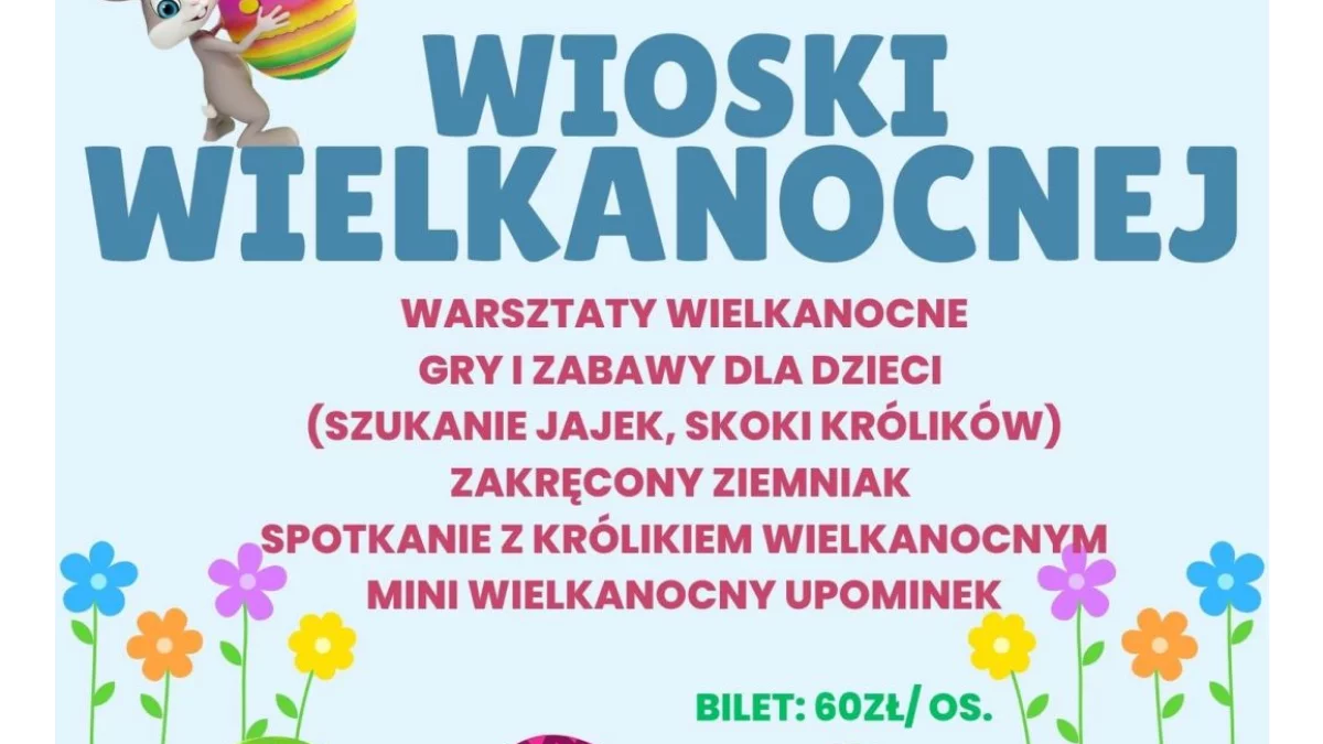 W programie przewidziano warsztaty wielkanocne, gry i zabawy, w tym tradycyjne szukanie jajek oraz skoki królików. Dodatkową atrakcją będzie „zakręcony ziemniak” oraz spotkanie z wielkanocnym królikiem, a każde dziecko otrzyma mini upominek.