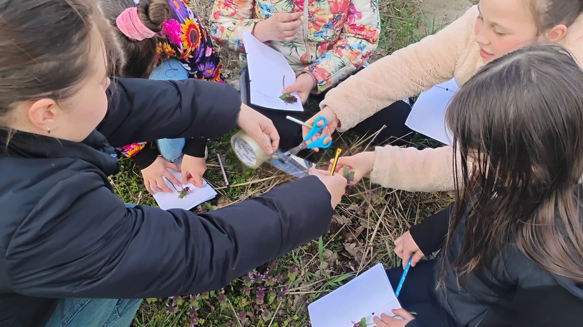Wyjście z budynku okazało się doskonałą okazją do uważnego przyglądania się budzącej do życia przyrodzie. Młode odkrywczynie z zaangażowaniem poznawały rośliny rosnące w najbliższej okolicy, analizowały kształty ich liści i wypatrywały pierwszych oznak wiosny. Najciekawsze okazy flory zostały przez nie starannie zebrane, by zyskać „drugie życie” podczas części warsztatowej.