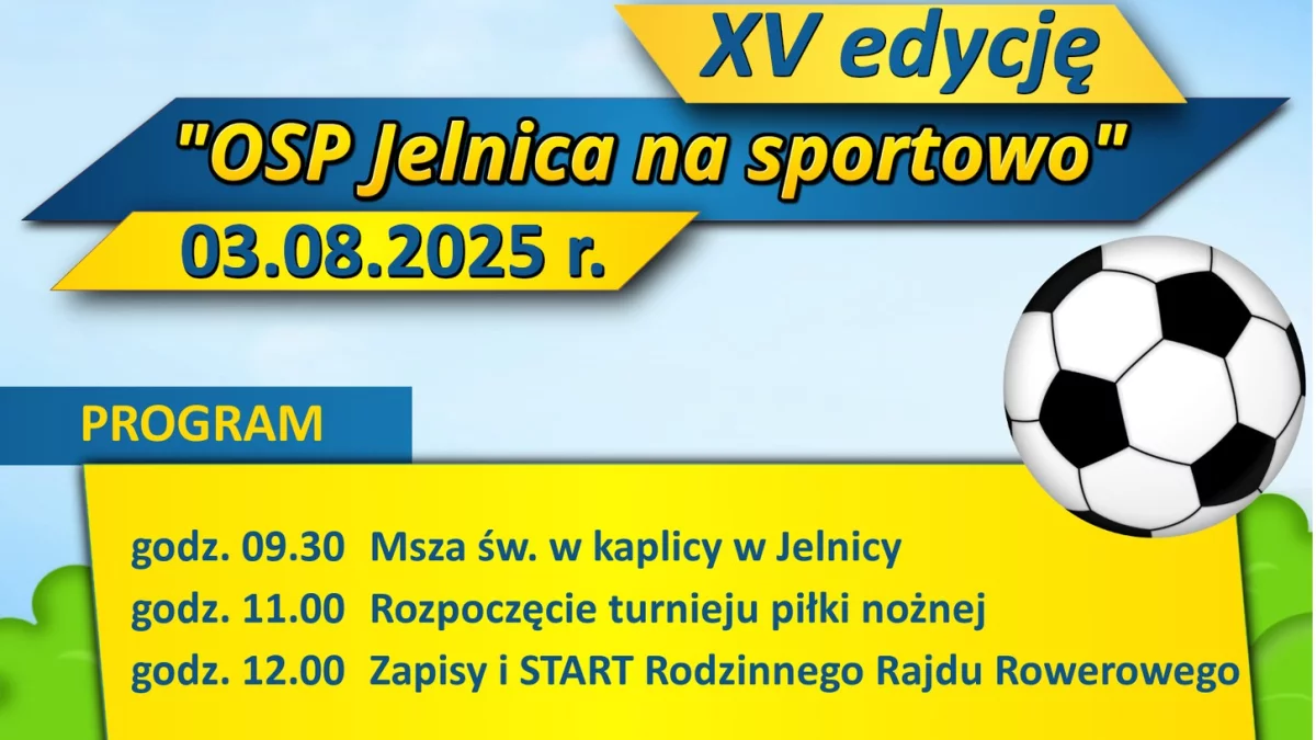 Informacje międzyrzeckieJuż po raz piętnasty mieszkańcy regionu spotkają się, by wspólnie spędzić aktywną, sportową niedzielę. „OSP Jelnica na sportowo” to wydarzenie, które łączy pokolenia – każdy znajdzie coś dla siebie: od piłkarskich emocji, przez rodzinny rajd rowerowy, aż po wspólne grillowanie i dobrą zabawę.