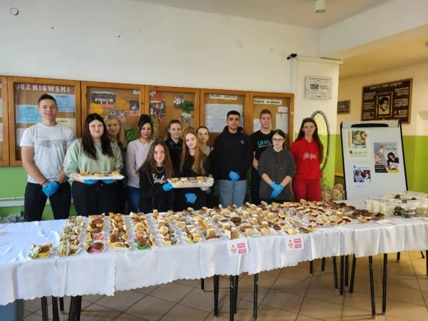 W związku z tym zorganizowany został w ZSE kiermasz charytatywny. Społeczność szkolna hojnie wsparła szczytny cel tego przedsięwzięcia. Uczniowie oraz nauczyciele przygotowali smaczne ciasta i sałatki, ze sprzedaży których udało się pozyskać kwotę 1930 złotych. Wszystkim darczyńcom serdecznie dziękujemy za udział i dar serca. Za organizację kiermaszu odpowiedzialne były panie: siostra Dariela, Izabela Jakimiak, Agnieszka Krzymowska i Monika Rosińska.