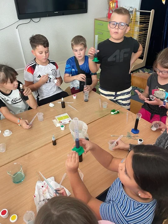 Kolejne zagadnienia realizowane podczas zajęć, zmierzały do poznania wartości pieniądza, przeliczania, rozwiązywania zadań związanych z obliczeniami pieniężnymi. Były też zakupy w pobliskim sklepie, obliczanie wydatków i planowanie kosztów zgodnie z cenami na opakowaniach. Uczestnicy poznali również sposoby tworzenia zbiorów biorąc pod uwagę cechy przedmiotów. Takie zajęcia to świetna zabawa pełną niespodziewanych obrotów sprawy. Uczniowie chętnie wykorzystują swoje zdolności i wiedzę, a także są pełni energii do działania. Zachęcamy do obejrzenia zdjęć, które pokazują ile zabawy i emocji jest podczas pracy dzieci.