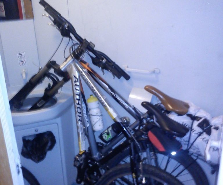 Ba! Zanim się zaczęło to już mieliśmy! Całości przygód z naszej podróży pociągiem nie będę opowiadał, ale pierwszy raz w życiu piłem mleko bez kawy z automatu, a w Warszawie musieliśmy się przesiadać dwa razy, bo nie było przedziałów rowerowych. I mimo, że mieliśmy bilety z miejscówkami, kierowniczka pociągu na Centralnym zapytała nas "czy do toalety się zmieszczą?". Powiedzieliśmy, że oczywiście! Zadanie było o tyle utrudnione, ze rowery nie mogły przeszkadzać innym podróżującym. Mam zdjęcie!
