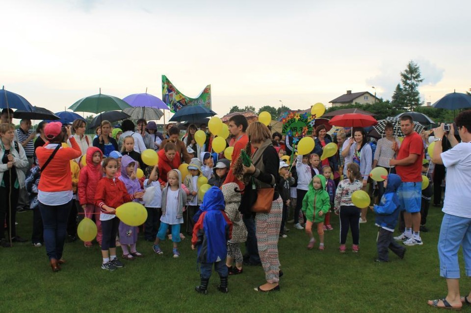 Na początek tegorocznej Przedszkolandii pogoda postraszyła tłumnie zgromadzone dzieci kilkoma burzowymi grymasami. Słońce jednak stanęło po stronie rodziców i ich pociech i radośnie przyświecało do końca imprezy. Podczas zabawy na Stadionie Miejskim im. Bronisława Saczuka rozgrywane były przygotowane przez studentów AWF konkurencje m.in. w rzucie do celu, slalomie hokejowym oraz wyścigi w workach. Najmłodsi mogli również korzystać do woli z dmuchanego zamku, tunelu oraz obecności druhów OSP Stołpno. W tak sympatycznej atmosferze nie obyło się oczywiście bez integracyjnego ogniska.