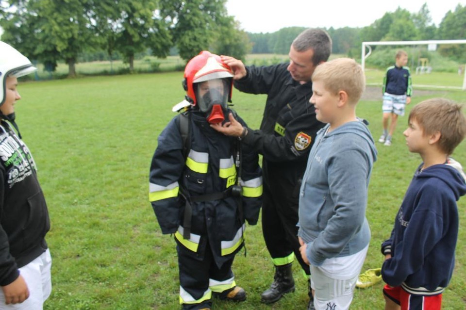 Pozostali uczestnicy akcji mogli udać się na boisko szkolne, na którym strażacy z OSP Stołpno i PSP Międzyrzec Podlaski organizowali różnego rodzaju zabawy dla dzieci i młodzieży.
