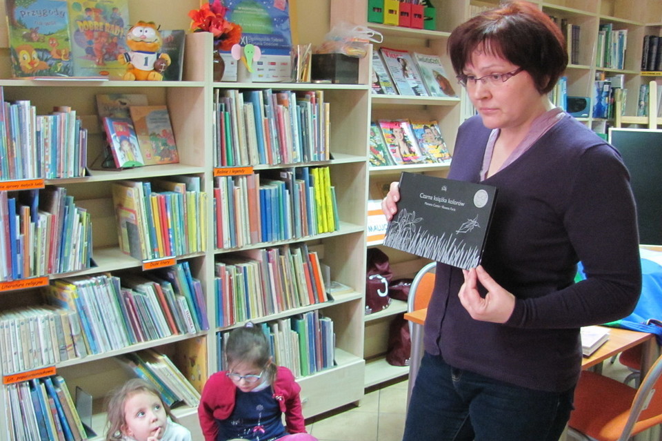 Czarna książka kolorów Menena Cottin została przekazana bezpłatnie przez wydawnictwo Widnokrąg w ramach Programu Rozwoju Bibliotek i jest dostępna w Miejskiej Bibliotece Publicznej w Oddziale dla Dzieci i Młodzieży.