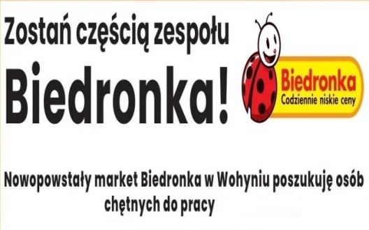 PROMOWANENowopowstały market Biedronka w Wohyniu szuka osób chętnych do pracy.