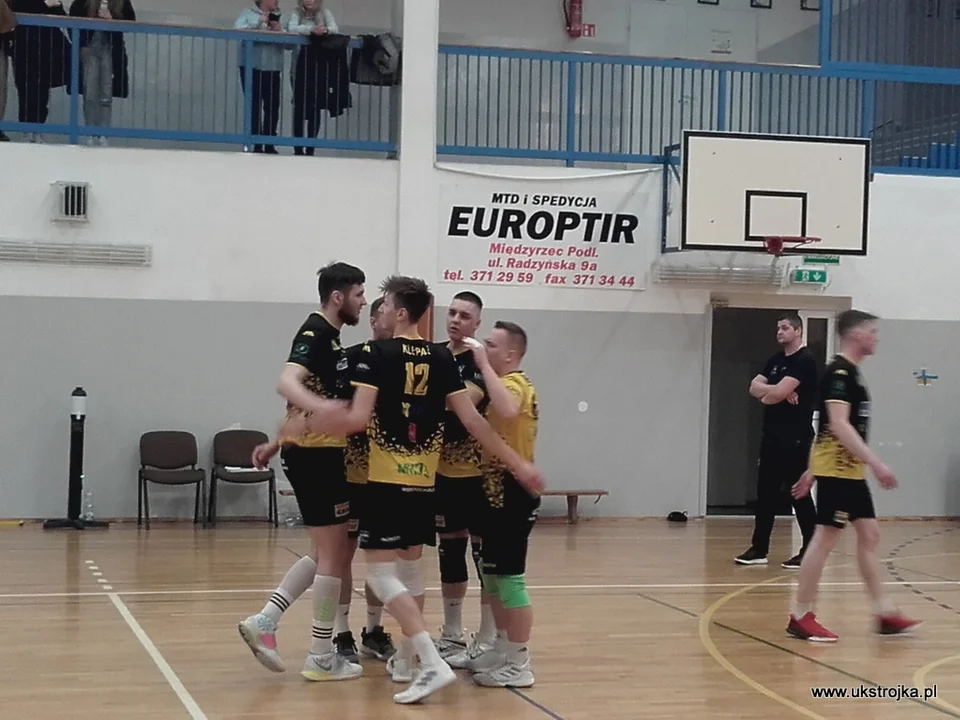 Dlaczego? W tej chwili nasi oraz Bzura Ozorków mają tyle samo punktów. Rywale rozegrali wszystkie mecze. Ich stosunek setów to 26:54. Międzyrzeczanie mają bilans 28:54. Tutaj wchodzi matematyka. Jeśli Trójka przegra w ostatniej serii gier 0:3 z MOS-em Wolą Warszawa to i stosunek setów będzie wynosił więcej niż obecnie mają siatkarze z Ozorkowa.