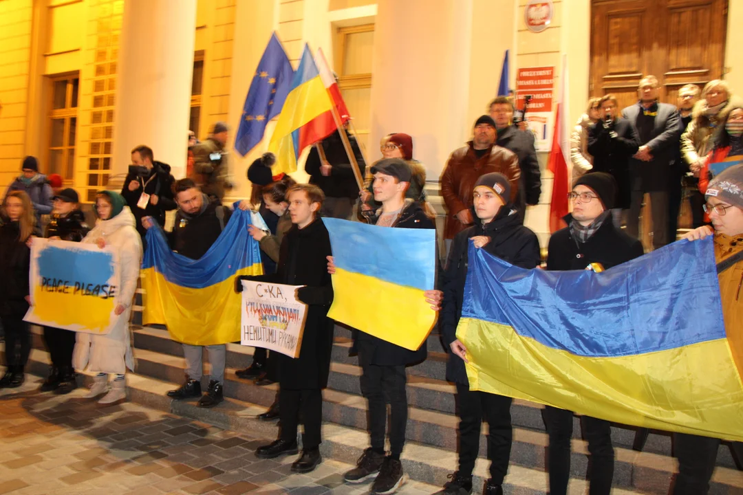 - Jesteśmy tu po to, by silnie zamanifestować przeciwko temu co się dzieje, żeby stanowczo i twardo powiedzieć "nie": naruszeniu suwerenności Ukrainy, nieprzestrzeganiu prawu międzynarodowych, agresji, przemocy i cierpieniu bezbronnych ludzi - zaznaczała Monika Lipińska, zastępca prezydenta Lublina ds. społecznych. - W naszym mieście od wielu lat żyją Ukraińcy. To nasi sąsiedzi, współpracownicy, przyjaciele. Dziś każdy gest solidarności jest ważny. Dziś deklarujemy, że nikogo nie zostawimy bez pomocy.