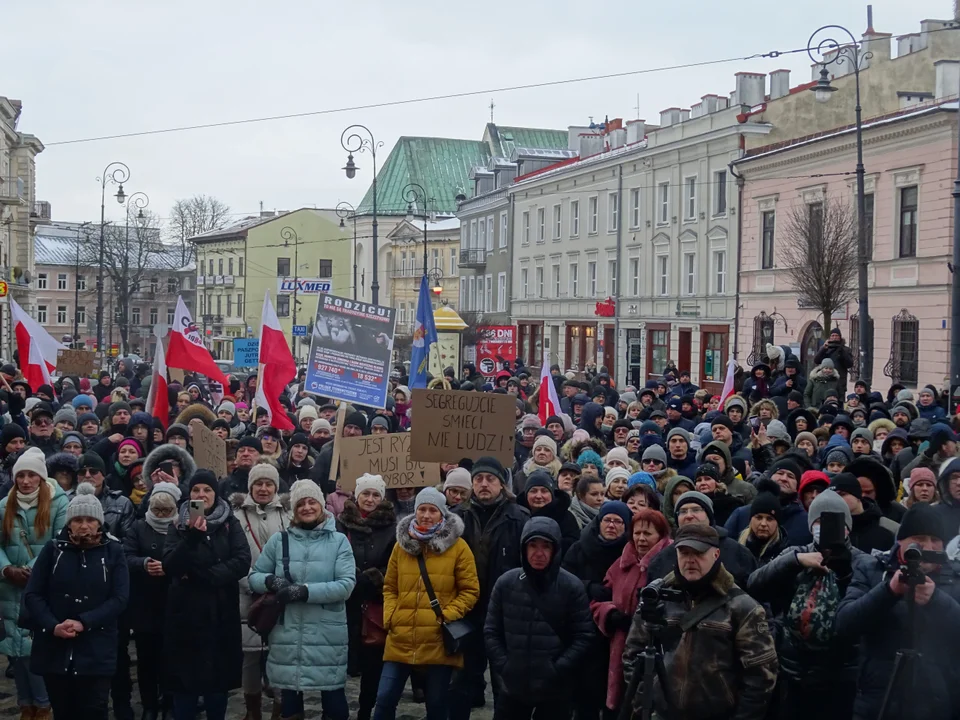 Protest przeciwko przymusowym szczepieniom przemaszerował Placem Zamkowym w Lublinie [FOTOGALERIA] - Zdjęcie główne