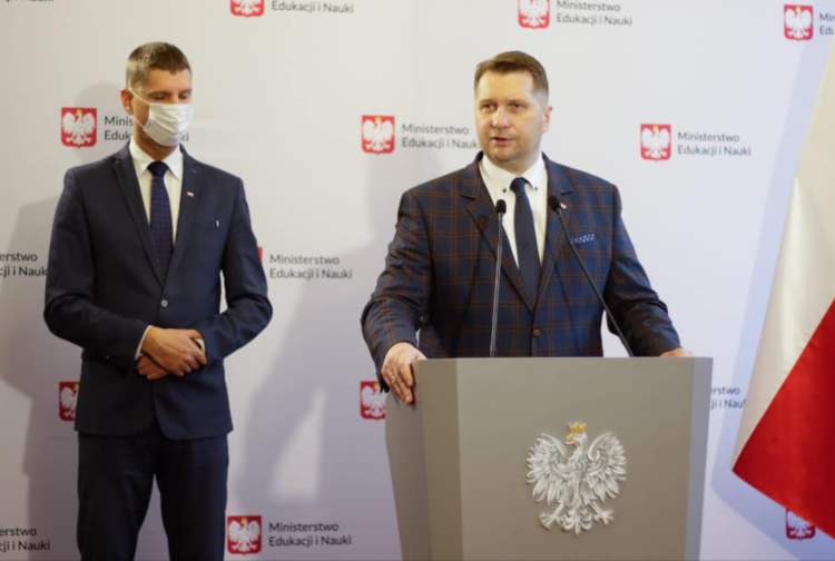Autor: Screen - Ministerstwo Edukacji i Nauki/Facebook | Opis: Konferencja prasowa ministra edukacji i nauki w sprawie nauki zdalnej w szkołach przy granicy z Białorusią